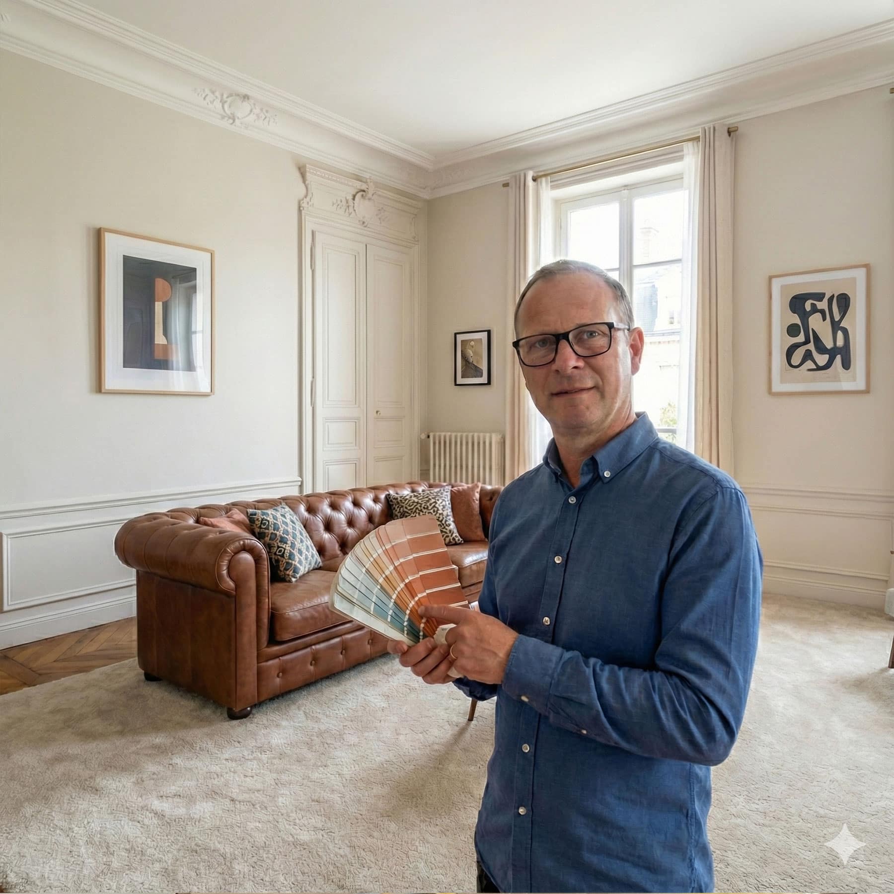 Je voulais un mur de couleur dans mon bureau mais j’hésitais. David a su me conseiller la bonne teinte pour ne pas assombrir la pièce. Le résultat est top, très moderne.